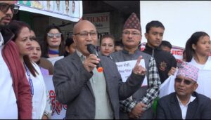 मंगलबार बिहान धुलाबारी चोक बाट शुरुआत भएको प्रभातफेरि र्याली खहरेडाँडी हुँदै कृषि विकास बैंक परिसरमा पुगेर कोणसभामा परिणत भएको थियो।