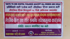 सोमबार विश्व एड्स दिवसको अवसरमा लैङ्गिक हिंसा विरुद्धको १६ दिने अभियानअन्तर्गत लैङ्गिक हिंसा तथा एड्ससम्बन्धी सचेतनामूलक कार्यक्रम आयोजना गरिएको थियो।