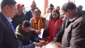 त्यहाँबाट पार्टीका जिल्ला तथा क्षेत्रीय नेताहरू, कार्यकर्ता र समर्थकसहित उम्मेदवारी मनोनयनका लागि क्षेत्रीय निर्वाचन कार्यालय पुग्नुभएको थियो ।