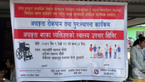 २०८१ सालबाट सञ्चालित “अपाङ्गता रोकथाम तथा पुनःस्थापना कार्यक्रम” मार्फत अपाङ्गता भएका व्यक्तिहरूको पहिचान कार्यक्रममार्फत पहिचान भएका व्यक्तिहरूका लागि नगरका विभिन्न स्थानमा शिविर सञ्चालन गरिएको, त्यसै गरी चैत १२ गते आँखा उपचार सम्बन्धी शिविरको आयोजना गरिएको महिला बालबालिका शाखा प्रमुख जयन्ती खरेलले बताउनुभयो।